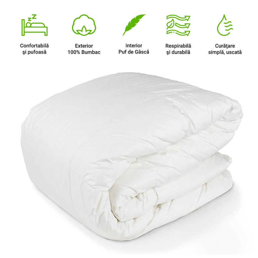 Umplutura 100% puf de gasca selectionat atent, prelucrat conform celor mai stricte standarde internationale.